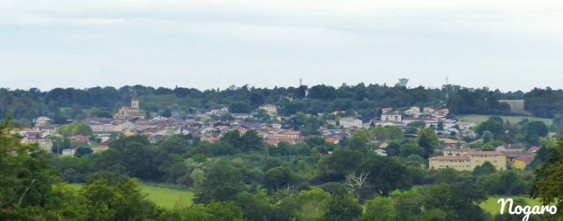 Après une nuit pluvieuse, nous quittons Eauze sous un ciel couvert. Très vite, nous nous retrouvons sur un chemin qui traverse des champs de maïs et de tournesols. Puis très vite, les vignes reprennent le dessus. Nous nous régalons de grappes cueillies en marchant. Dix kilomètres plus loin, nous longeons une dizaine d'étangs réservés à la pisciculture et arrivons au petit village de Manciet. Nous y faisons la pause café en compagnie d'autres pèlerins. Nous trouvons l'église fermée, cependant, en repartant nous croisons une personne qui nous dit : "Je vais ouvrir l'église pour un quart d'heure, si vous voulez en profiter" ; encore un signe comme quoi nous devions rentrer dans cette église. A la sortie de Manciet, nous subissons 1,5 kilomètre pas facile le long de la nationale avec la circulation et de gros camions qui nous dépassent. Heureusement, nous retrouvons très vite d'agréables sentiers à travers les vignes où se déroulent les vendanges. Un arrêt à l'église de l'Hôpital, autrefois refuge pour les pèlerins pour dormir et avoir des soins. Le chemin se poursuit pour les cinq derniers kilomètres. Soudain, une magnifique vue s'offre à nous sur le village de Nogaro et son circuit automobile, puis nous plongeons sur le centre-ville. Cette fois c'est raté, pour dix minutes de retard, nous ne pourrons pas obtenir le tampon à l'office de tourisme... mais la terrasse d'un café est encore ouverte pour notre binouse... (lol). Pascale et Dominique nous attendent pour déjeuner sur l'aire de camping-car, tout à coté du célèbre circuit automobiles. Une bonne sieste de récupération et nous partons tous les 4 visiter le village et cette fois l'office du tourisme est ouvert et nous pouvons faire tamponner nos précieuses crédentiales. En fin d'après-midi, nous entendons le tonnerre au loin ; s'il pouvait pleuvoir un peu pour rafraîchir l'atmosphère tellement lourd ce serait bien. Demain, c'est une étape de 28km pour au final rentrer dans le département des Landes.