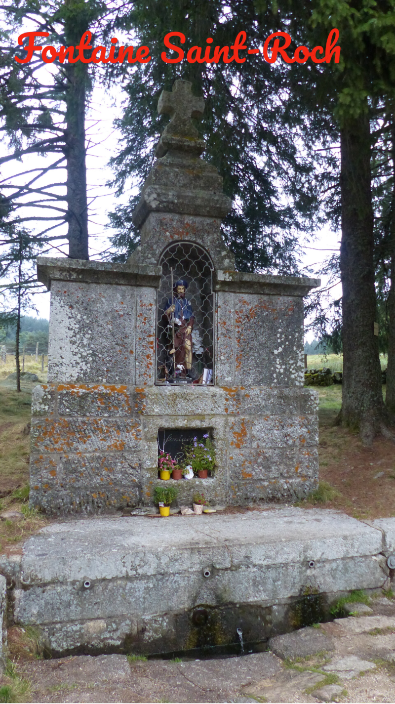 Après un dîner préparé par des agriculteurs du Sauvage et des alentours, à base de produits locaux , nous passons une bonne nuit. Un jeune pèlerin, que nous croisons régulièrement sur le chemin, a dormi sous la tente. Il me dit : "C'était un peu juste, je n'ai pas le confort d'un Camping-Car". Nous prenons le chemin à 7h30 avec le lever du jour, nous sommes sous la brume. Au bout de 100m, devinez-quoi : Jo me fait encore le coup du "M...., j'ai oublié mon téléphone". Ce à quoi je répond : "Et bien tu paieras la binouse à l'arrivée". Nous adoptons une foulée souple car cette étape est la plus longue depuis notre départ et les mollets à l'arrivée nous rappelerons que nous avons fait 10km de plus que la veille. Heureusement les chemins sont bien carrossés et nous n'avons pas rencontré de difficultés particulières. Première halte au bout de 4 kilomètres à la fontaine St Roch. Nous goûtons un verre de cette eau "guérisseuse" qui, à l'époque, soignait la peste. Aujourd'hui, on lui prête encore des vertus miraculeuses aussi nous ne manquons pas de remplir une bouteille pour nos épouses. Un peu plus loin, nous faisons une nouvelle halte afin de visiter la chapelle St Roch, elle vaut le coup d'œil. La suite du chemin est une descente à travers la forêt pour rejoindre St Alban-sur-Limagnole. Un arrêt à la boulangerie pour acheter les sandwichs de midi puis, quelques mètres plus loin, une nouvelle halte au bar face à l'église pour prendre un café. En repartant, Je m'écrie : "Jo, je n'ai plus mes bâtons, on a du me les voler". Jo répond : "Tu les avais posés pour acheter ton sandwich et tu as du les laisser à la boulangerie". Prenant mes jambes à mon coup, je remonte la rue. Je pousse un grand ouf de soulagement, ils m'attendaient bien sagement ; les perdre m'aurait bien agacé, car ils sont estampillés "Chemins de Compostelle". Passé cette petite anecdocte, nous reprenons la route jusqu'à Chabannes. Nous déjeunons sur un aire de pic-nic mis à la disposition des marcheurs par une ferme produisant des fromages et des savons. Nous voilà requinqués, les dix kilomètres restant se déroulent sur de bons chemins, nous nous faisons même plaisir en effectuant la dernière montée en cadence rapide. Cela nous donnera une bonne raison (s'il en fallait) en arrivant à Aumont-Aubrac de nous abreuver d'une double binouse (chacun la notre puisque nous avons tous les 2 fait un oubli). Nous faisons compléter nos Crédentiales à l'office du tourisme et rejoignons le Camping-Car pour cette prochaine nuit.