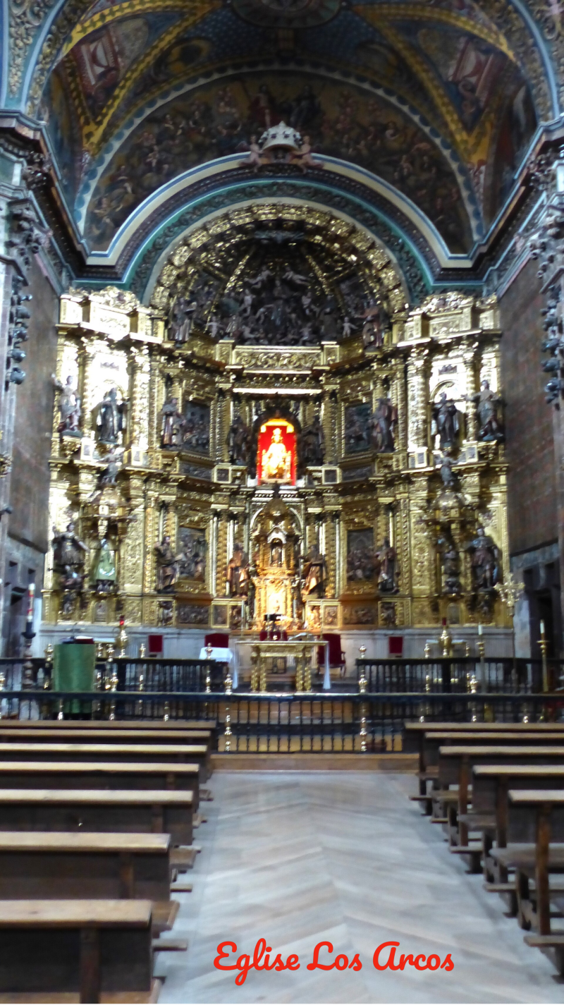 Comme ce matin l'étape n'est pas très longue, nous profitons d'une grasse matinée avec un lever à 7h00. De plus, avec l'aire de camping-car situé en sortie de ville nous gagnons 1,2 km. Nous rejoignons le chemin qui passe dès le départ devant la bodéga du monastère où se trouve la fontaine à vin. En bon pèlerins, nous goûtons un verre de vin appellation Rio Grande qui à notre surprise est assez bon. Nous continuons ensuite le chemin qui après une brève montée arrive à une intersection qui propose deux parcours pour se rendre à Los Arcos. En regardant l'application Visorando, nous décidons de suivre celle mentionnée. Nous commençons donc une montée régulière à travers une forêt sur un agréable sentier qui débouche sur un chemin où nous découvrons une splendide vue sur la vallée. Alors que nous nous arrêtons pour faire des photos, nous sommes rejoints par Isabelle, originaire de Lyon, que nous croisons régulièrement depuis de nombreuses étapes, et par Philippe, originaire de Sauzet dans la Drôme, qui chaque année passe une semaine sur le chemin. Nous allons marcher ensemble durant environ une dizaine de kilomètres pour passer le col et descendre ensuite sur le village de Luquin dans lequel nous faisons la pause café. La seconde partie de l'étape, se fait à travers d'interminables champs de blé où serpente le chemin. A deux kilomètres de l'arrivée, nous voyons Pascale et Dominique venir à notre rencontre pour terminer avec nous le parcours. Vers 12h30, nous entrons dans Los Arcos, un joli petit village doté d'une superbe église que nous visitons avant d'aller prendre la traditionnelle binouse et le déjeuner. L'après-midi après un temps de repos, nous parcourons le village. Vu la tranquillité du parking, la nuit devrait être calme avant l'étape un peu plus longue de demain.