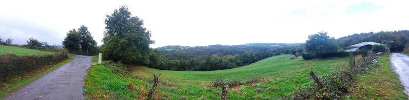 Il a beaucoup plu hier soir, mais ce matin pas de goutte pour débuter cette étape en traversant le village de Triacastela. Aïe, aïe, aïe, j’ai parlé trop vite ; après un kilomètre la pluie arrive et c’est le premier arrêt pour capeler pantalon et poncho. A la frontale, les cinq premiers kilomètres vont s’effectuer sous la pluie le long de la route nationale jusqu’au village de Renche. Quittant la route, nous prenons ensuite un chemin qui nous emmène à travers la campagne de Galice qui ressemble beaucoup aux paysages d’Ardèche. Les châtaigniers sont nombreux et leurs feuilles tapissent le chemin. Au neuvième kilomètre, nous arrivons à Samos connu pour son monastère de San Julián, l’un des plus anciens de Galice. Nous rentrons dans le premier bar ; quel bonheur d’enlever le poncho et de se retrouver devant un bon café et chocolat avec comme petite douceur un "maousse" pain au chocolat. Lorsqu’il faut repartir, la pluie est toujours là, mais moins forte. Trois kilomètres à nouveau le long de la route avant de récupérer un sentier qui n’est pas, aujourd’hui, une partie de plaisir. À savoir, zigzaguer entre les flaques d’eau, chercher un passage dans une descente où les ruisseaux ravinent ou regarder où il faut mettre les pieds en montant à travers des roches glissantes. Nous n’avons jamais relâché notre attention jusqu’à ce que la pluie s’arrête à six kilomètres de l’arrivée. Vers treize heures, la ville de Sarria est en vue et une demi-heure plus tard nous sommes à l’office du tourisme où une française nous accueille pour tamponner nos crédentiales. Nos vêtements étaient mouillés et j’ai entendu mon gosier me dire "Et mon gars, c’est ton gosier qui te parle, j’ai pas le droit d’être rincé moi aussi". Du coup, obligés de rentrer dans le prochain bar pour notre binouse pression citron avant de rejoindre ensuite l’aire de camping-car pour déjeuner avec Pascale et Dominique. La surprise du jour a été pour nous non pas la pluie qui était annoncée, mais la distance. Le guide indiquait 21,5 kilomètres alors qu’au final nous en avons fait 25. Les étapes pour rallier Santiago de Compostella se comptent ce soir sur les doigts d’une main, espérons que celle de demain annoncée également pour 21,5 kilomètres ne sera pas elle aussi rallongée. J’ai demandé à Jo sa réponse à la question d’Arlette ; l’objectif prioritaire est d’arriver à Santiago mais il n’est pas impatient d’y être. Pour ma part, je dirai que je me sens serein et libre sur le chemin et que je sais désormais que nous serons devant la cathédrale de Saint-Jacques lundi prochain. Pour moi, le chemin continuera même si je redoute de retourner à un train-train quotidien... mais comme j’ai toujours eu l’esprit aventurier, je sais que de nouvelles aventures m’attendent quelque part...
