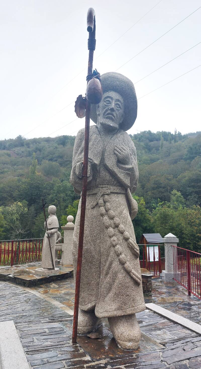 Mercredi 19, ce matin, nous avons compris pourquoi on dit que la Galice est la sœur jumelle de la Bretagne… Parties de Triacastella à 8 h ce matin sous la pluie, à 11h30 nous sommes toujours sous la pluie… Mais, comme disent les bretons, ça va se lever… Effectivement, il est 12h30 et un coin de ciel bleu se pointe ! Espérons que cet après-midi nous puissions profiter de la ville de Sarria en compagnie de nos 2 coquillards remis au sec !